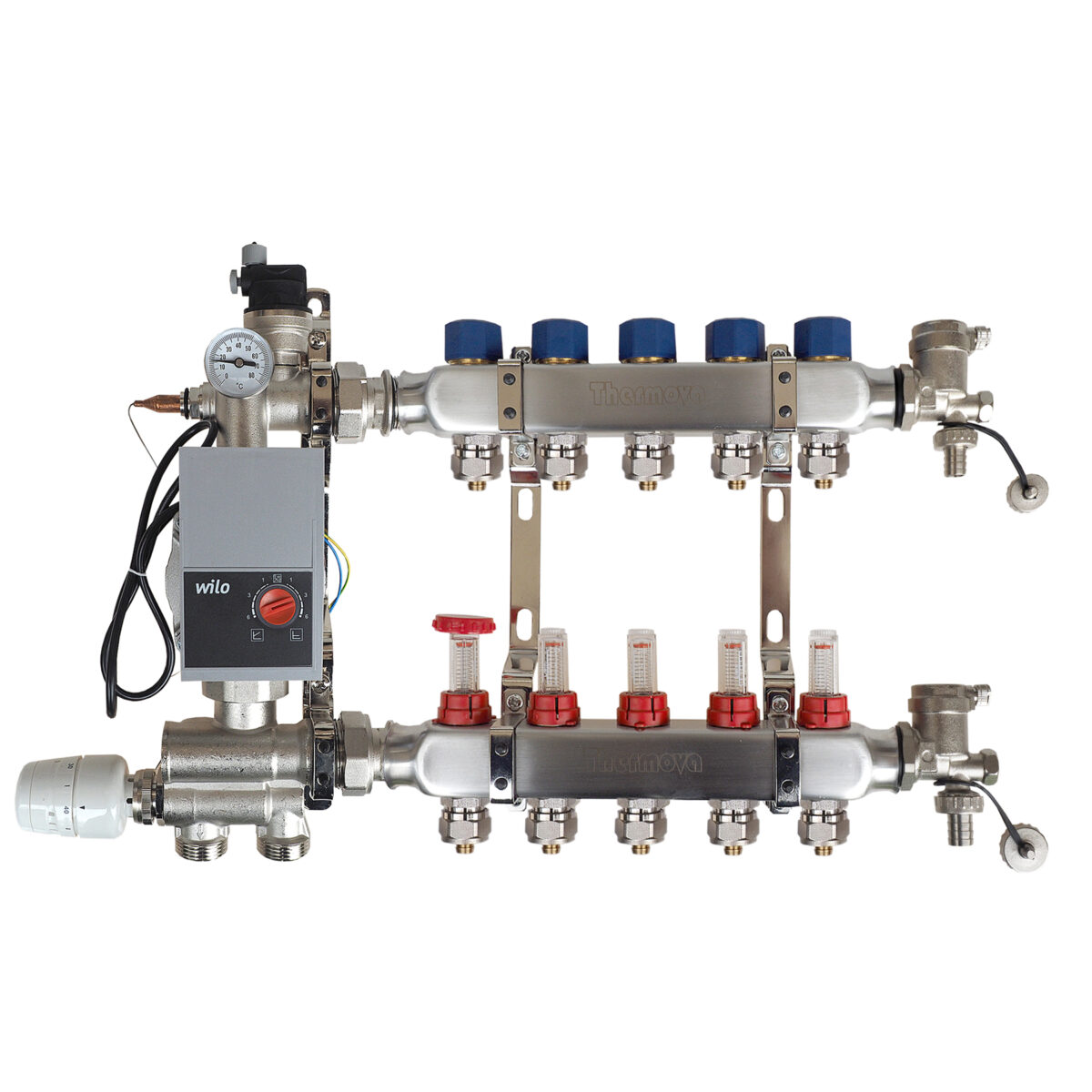 Dynamischer Edelstahl-Systemverteiler Plus mit automatischer Durchflussregelung, 9 Heizkreise